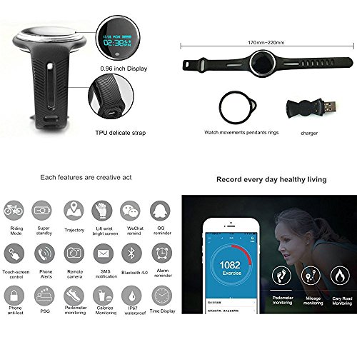 -. Feature : Watch Band Length:170mm-220mm / Display: 0.96 inch OLED / Waterproof Standard: IP-X67 / Charge:5V USB jack¡ê?charge by PC USB / Supported models: For iPhone 4S / 5 / 5C / 5S / 6 / 6P IOS6.1 above, Android 4.3
