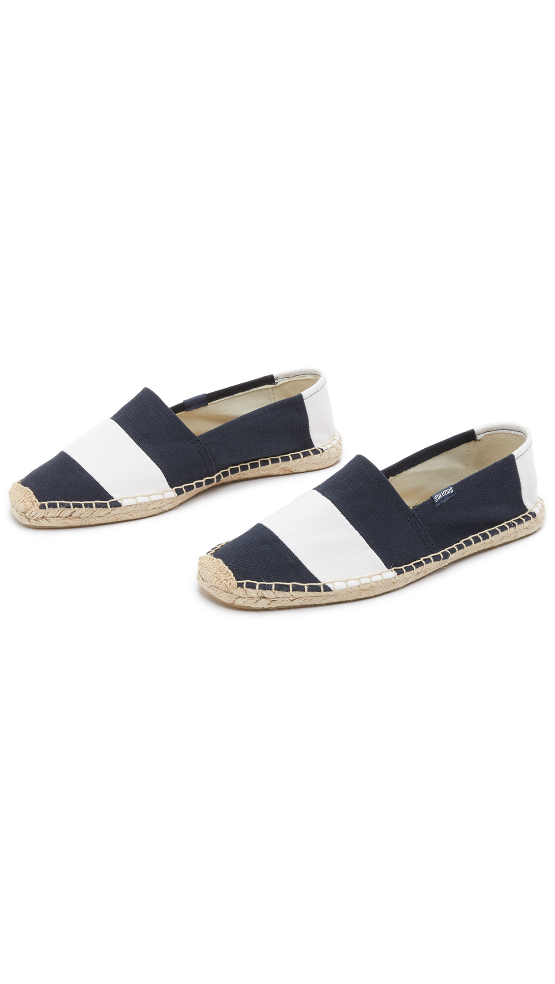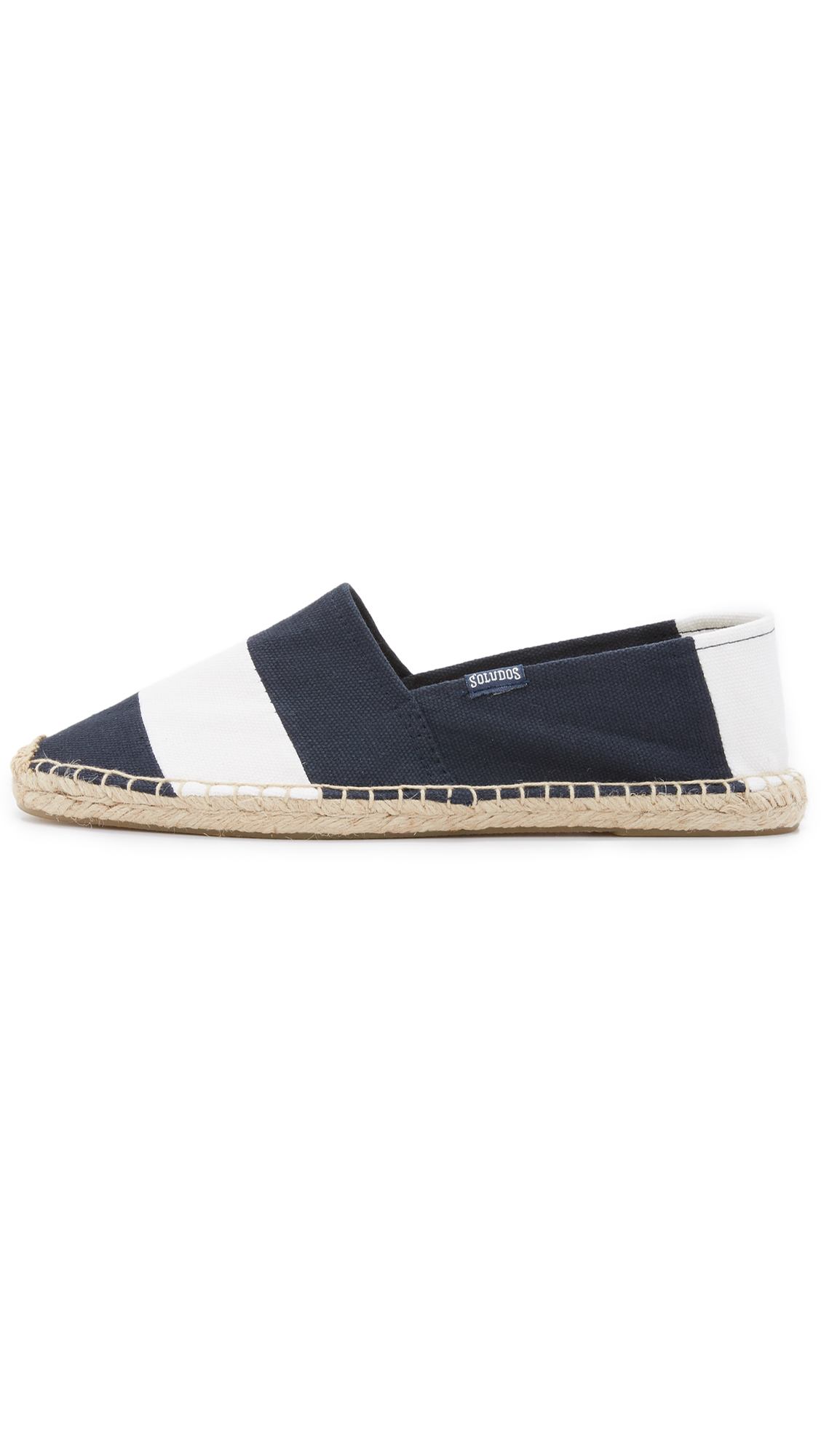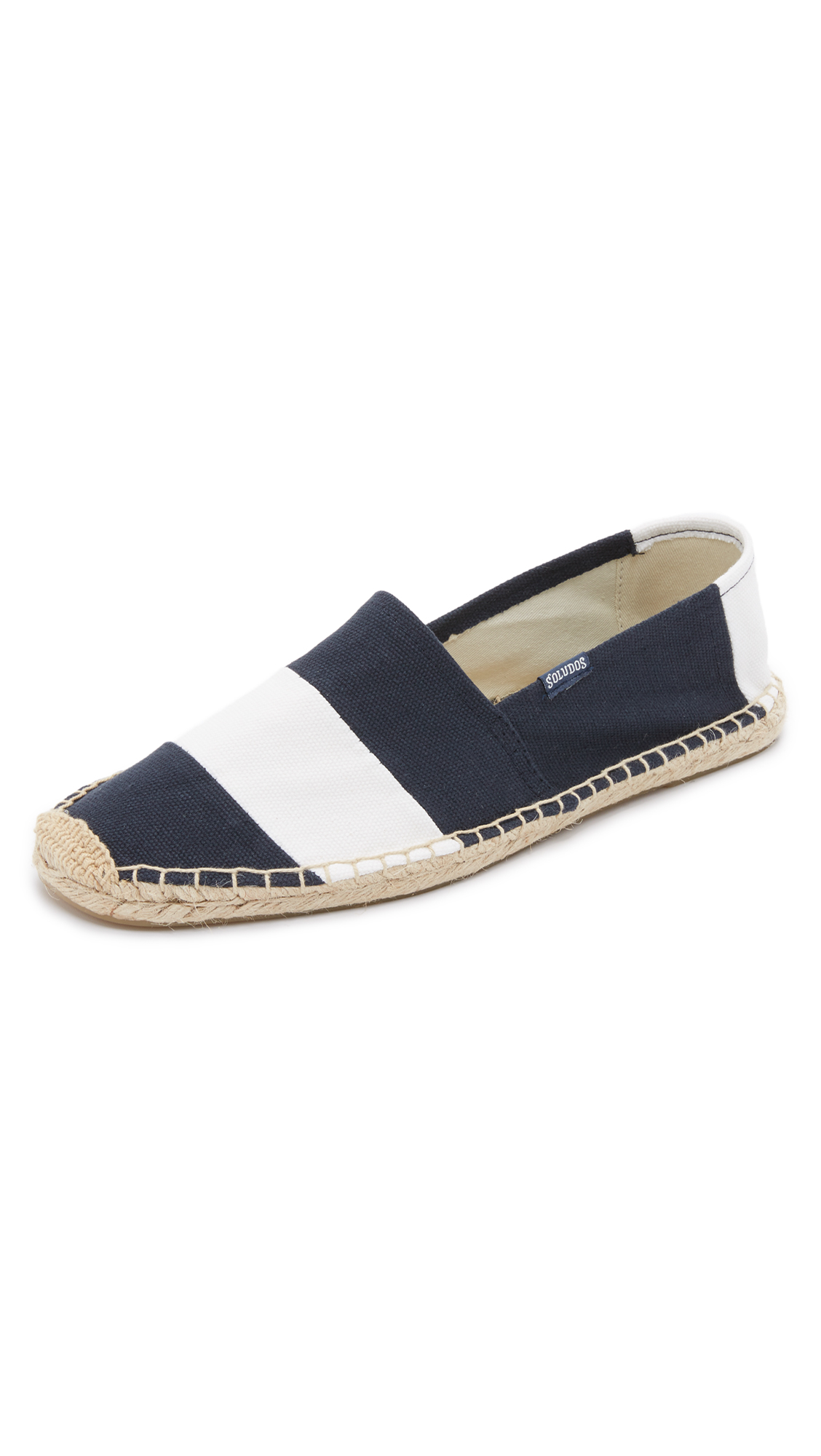 These classic Soludos espadrilles have wide stripes for a nautical feel. The canvas upper and jute footbed provide maximum comfort and breathability, and the rubber outsole offers traction.