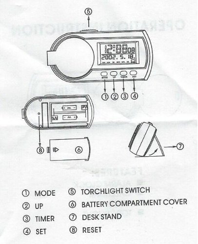 - Feature : LCD Digital alarm clock with calendar - Excellent quality - Perfect for regular use or Traveling / Compact Size Traveler Alarm / Hourly chime - Perfect for college students, desk, kitchen, traveling or gift / Torchlight (Flashlight) / Requires 2 AA Batteries (Not Included)