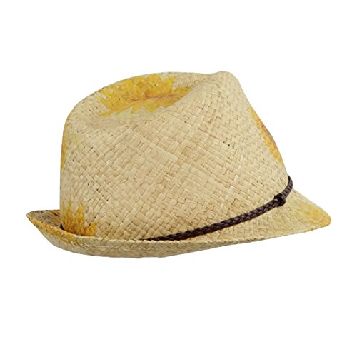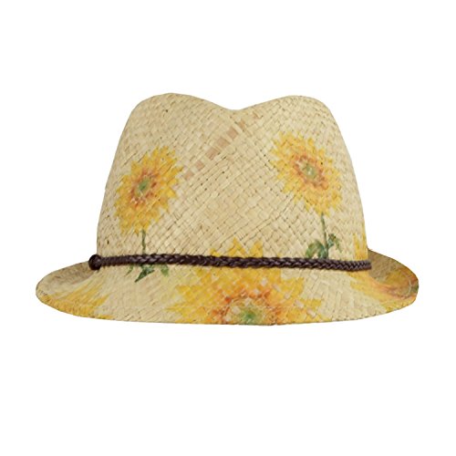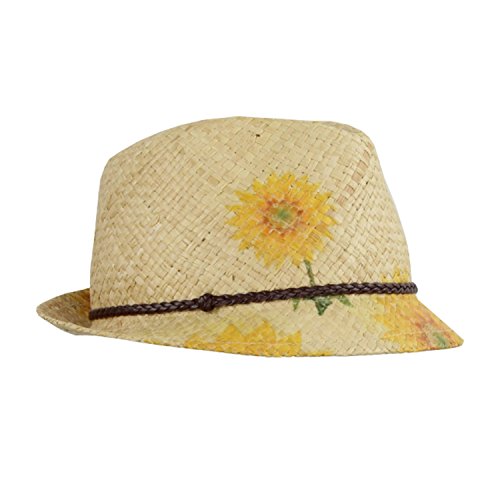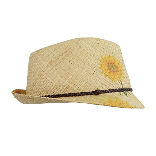 -. Binding : Apparel -. Brand : FLH -. ClothingSize : One Size -. Color : Natural -. Department : womens -. EAN : 0784672929035 -. Feature : Cute raffia straw fedora hat for Women is one size fits most up to apx 24 in. / Features hand painted sunflower print / 1.5 inch wide brim is upturned in back and down in front / .25 inch wide dark-brown braided faux-leather accents hat / Interior ribbon sweatband, Includes size reducing tape to adjust fit if needed -. MPN : LLS1219 -. PackageQuantity : 1 -. PartNumber : LLS1219 -. ProductGroup : Apparel -. ProductTypeName : HAT -. Size : One Size -. Title : Summer Straw Fedora Hat, Hand Painted Yellow Sun Flowers, Vegan Leather Trim -. UPC : 784672929035