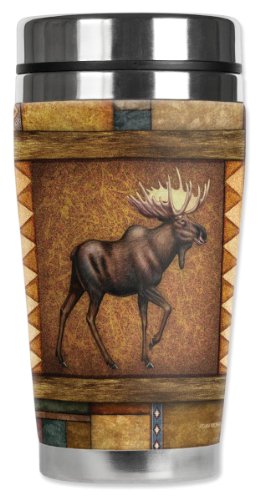 Mugzie Moose Tapestry Travel Mug with Insulated Wetsuit Cover, 16 oz, Black