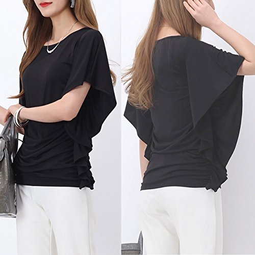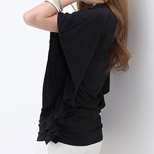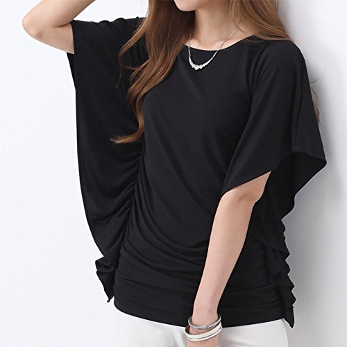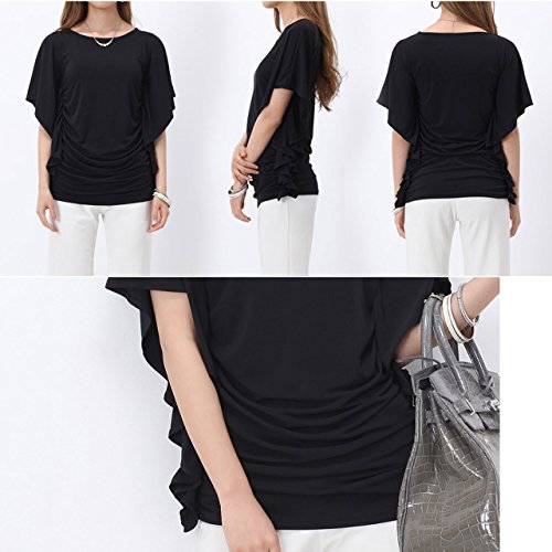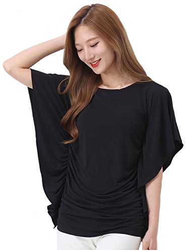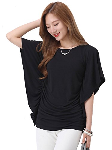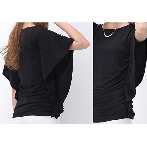 -. Title : MIKA&MAYA 半袖 ドルマン カットソー シャツ 無地 シャーリング 黒 レディース