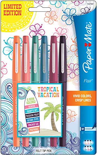 -. Title : Paper Mate Flair Medium Felt Tip Pens 6/Pkg-Tropical Vacation