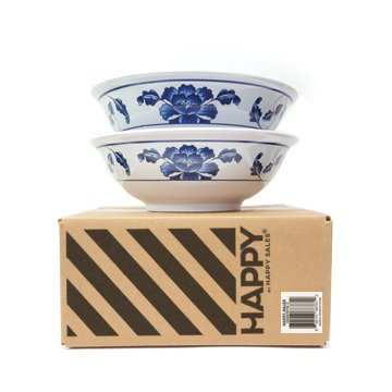 Happy Sales Blue Lotus Design Melamine Oriental Pho Noodle Soup Bowl (Set of 2), 36 oz, Multicolor