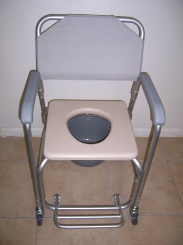 Studio : MedMobile® Publisher : MedMobile® Product Description TOTAL WEIGHT IS 16 LBS (WITH THE 1 LB BUCKET INSERTED) | TOTAL DIMENSION IS 37 Inch (H) X 22 Inch(W) X 21 Inch (D - WITH FOOTREST FOLDED) | TOTAL DIMENSION IS 37 Inch (H) X 22 Inch (W) X 27 Inch (D - WITH FOOTREST EXTENDED) | ALUMINUM COMMODE SHOWER CHAIR WITH FIXED ARMRESTS | REAR LOCKING CASTORS | FOLDING FOOTREST | 17 Inch (W) X 17 Inch (D) PLASTIC COMMODE SEAT | PLEASE NOTE THIS ITEM CURRENTLY CAN ONLY BE SHIPPED TO A PHYSICAL STREET ADDRESS WITHIN THE 48 CONTIGUOUS US STATES VIA STANDARD SHIPPING, WE APOLOGIZE FOR ANY INCONVENIENCE THIS MIGHT CAUSE. 0