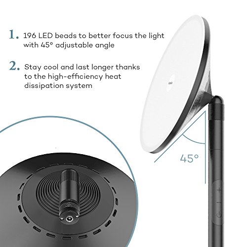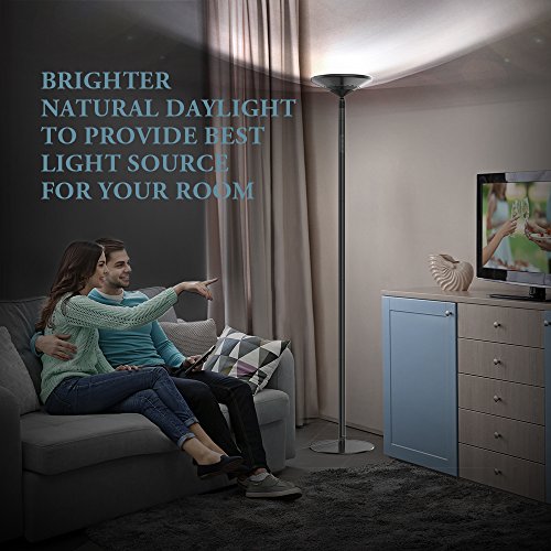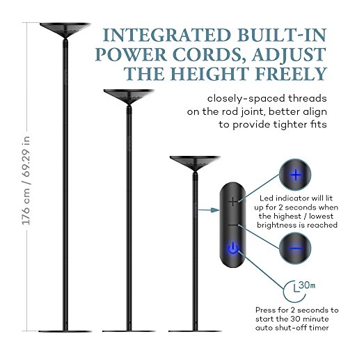 【BRIGHT NATURAL DAYLIGHT WITH 5 LEVEL DIMMER & 30 MINUTES TIMER】: With the 196pcs of leds, this LED Floor Lamp can emit 5500k bright natural light instead of warm yellow light for your living room or bedroom. Long press the ON/OFF switch for 2 seconds can activate the 30-minuter timer. Thanks to the soft reflected light, it will bring you with better atmosphere .