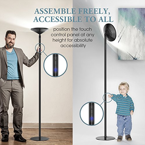 Avantica LED Torchiere Floor Lamp - 5500K Natural DayLight,Height adjustable,0 Delay with Wall Switch,4200 Lumens,30W,Touch Control,5 Level Brightness,30 Minutes Timer For Living Room,Bedroom,Office