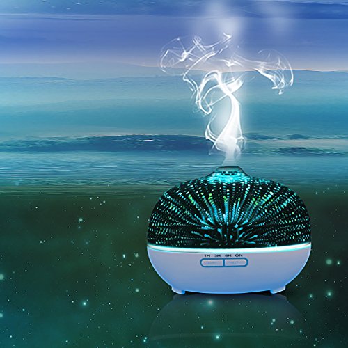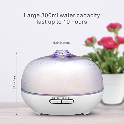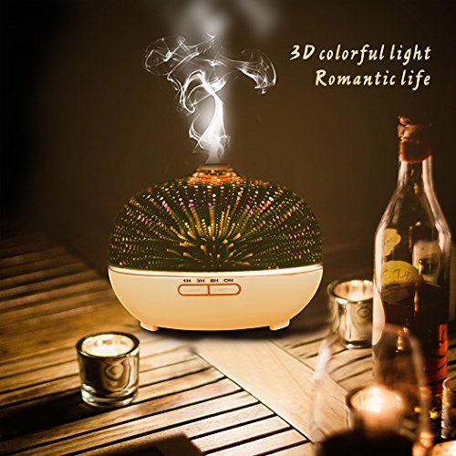 YCIND Essential Oil Diffusers Cool Mist Ultrasonic Humidifiers Glass 3D Stars Fireworks 7 Colors LED Light Auto Shut-off for Office Home Bedroom 300ml