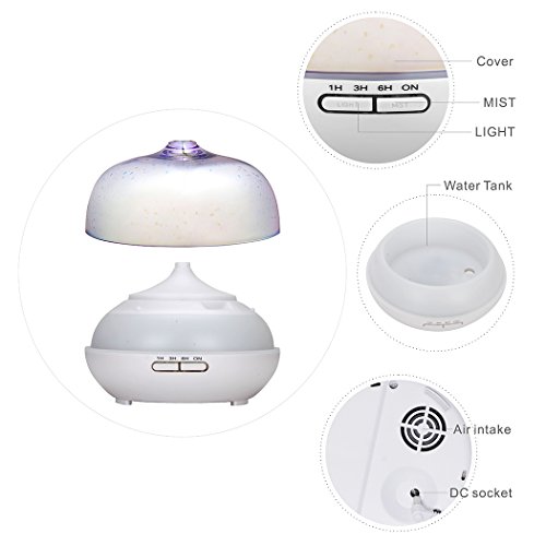 Colorful Romantic Light: This diffuser cover is made of glass with 3D stars firework 7 colorful LED light, each color brightness level can adjust between bright and dark