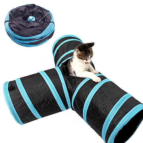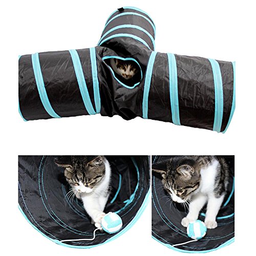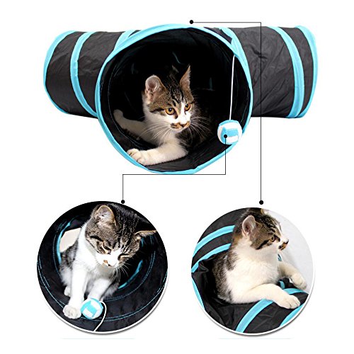 3 tunnels in one - Includes a dangle ball toy, more entertaining for your love pets like cat kitten puppy or rabbit.