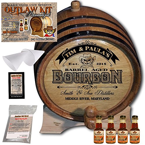 Studio : American Oak Barrel Publisher : American Oak Barrel Product Description Branded backside with Skeeter's face, insures this is a Certified, Authentic American Oak Barrel Product! Personalized Outlaw Kit "MADE BY" American Oak Aging Barrel - Design 102: Barrel Aged Bourbon - 2018 Barrel Aged Series............This vessel is handcrafted from American white oak, bound by 6 hoops of steel and features a stunning laser engraved design celebrating Dad's endeavors! Outlaw Kit includes Skeeter's Reserve Premium Essence necessary to create your own Spirit Masterpiece! The barrel is perfectly charred to release the sugar from the oak. After the firing process, the sugar caramelizes on the inner wall and is critical to mellowing the decanted spirit. The longer your spirits age in this barrel the smoother, refined or mature it becomes. Accommodates approx. 4 fifths of spirit. Please enjoy responibly! 0