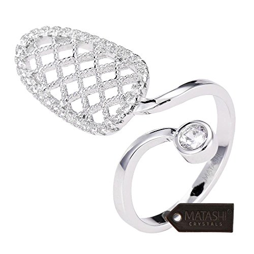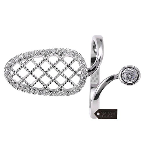 Rhodium Plated Almond Shape Wrap Ring By Matashi Size 5:Unique/Modern Accessory For Women & Girl,Elegant Gift Idea,NonTraditional & High-End,CZ Stone