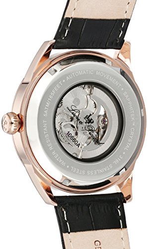 -. Feature : Precise 17 Jewels Automatic Movement; Sapphitek Crystal; Rose Gold Tone IP Stainless Steel Case / Silver See-Thru Skeletonized Dial with Black Border, Rose Gold Tone, Red and White Hands, Rose Gold Tone Hour Markers and Arabic Numerals; Luminous; Black Leather Strap / Automatic-self-wind Movement / Case Diameter: 45mm / Water Resistant To 165 Feet