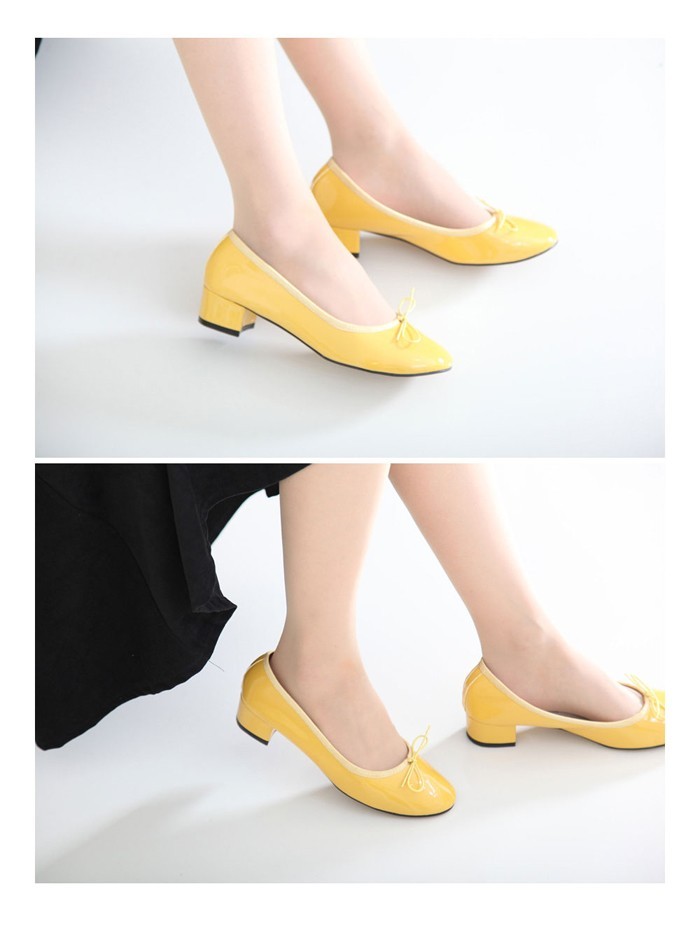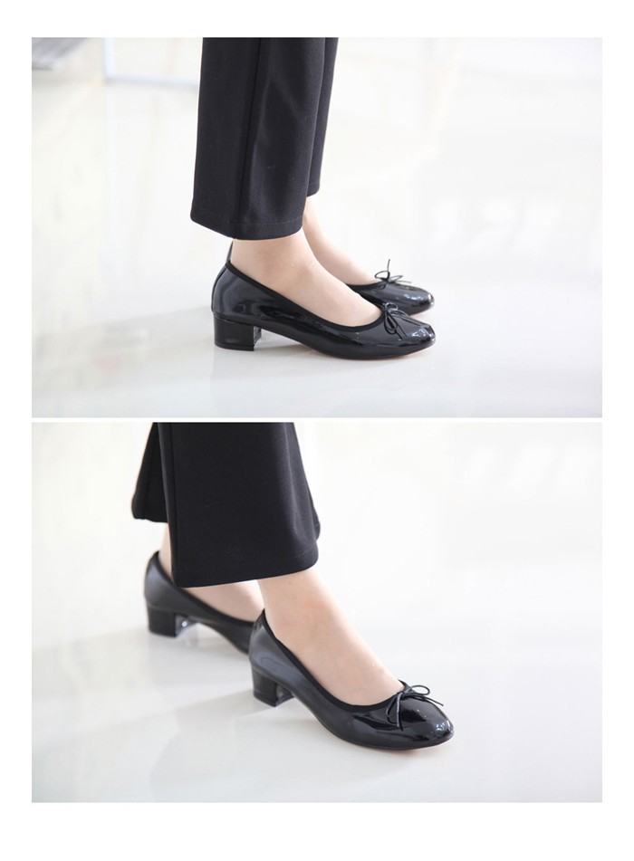 商品名:パンプス レディース ローヒール リボン エナメル調 2017 秋 冬 ファッション 靴 婦人靴