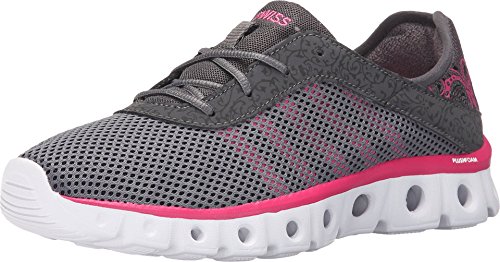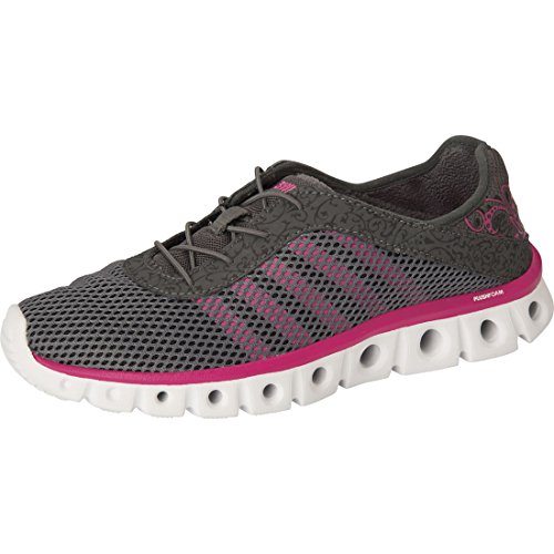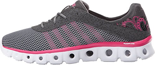 Foam padded collar and tongue for comfort. Lace-up front for a snug fit. Pull loop at heel for easier entry. Soft textile lining and a memory foam footbed for comfort. Tube technology midsole and outsole for springy cushion and mobility. Durable outsole. Imported.