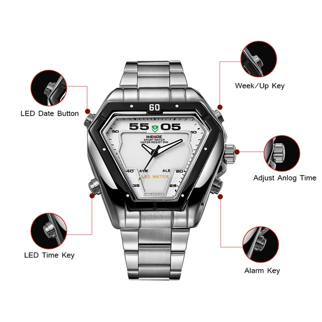 | [해외] 웨이드 브랜드 시계 럭셔리 스포츠 watchblack 골드 스테인레스 스틸 날짜 디지털 드레스 석영 비즈니스 시계 패션 캐주얼 시계 |