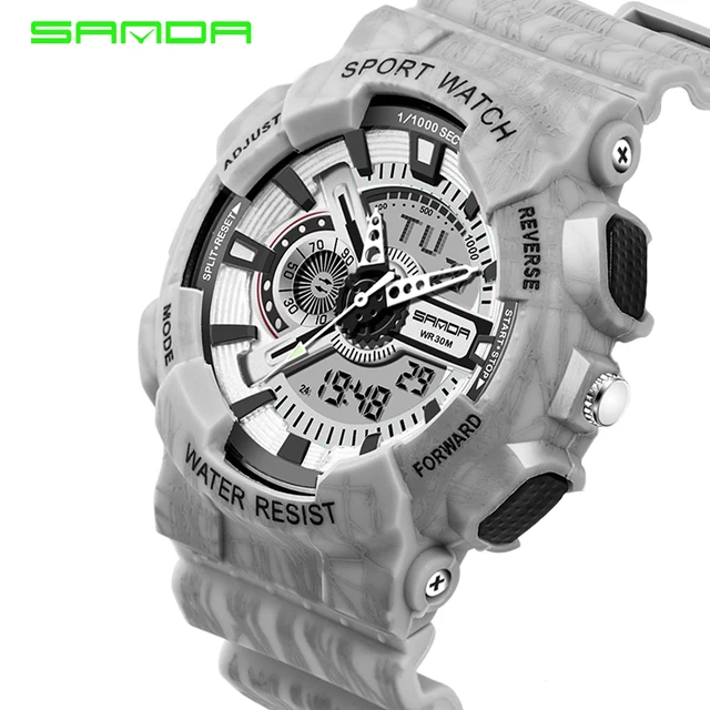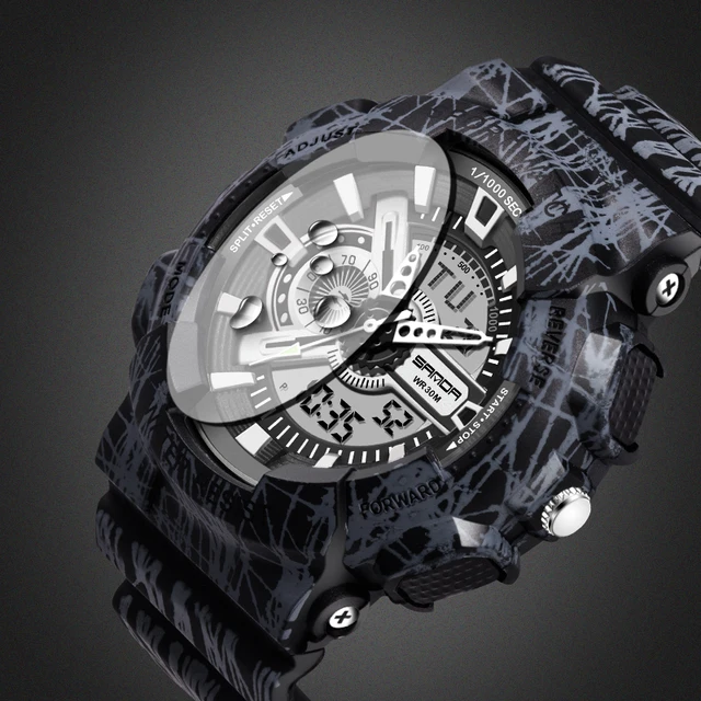 | [해외] 산다 럭셔리 브랜드 LED 디지털 남성 군사 시계 남성 스포츠 시계 3ATM 수영 등반 야외 남성 손목 시계 relogio masculino |