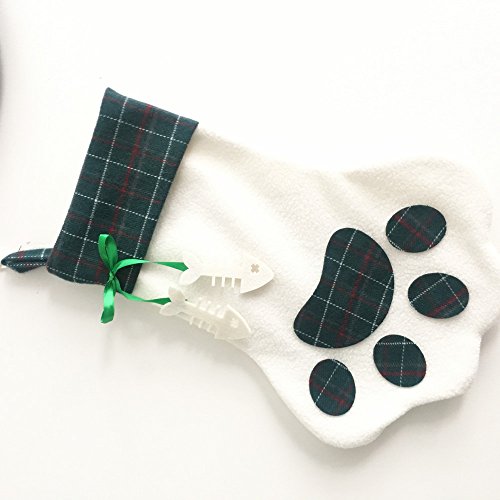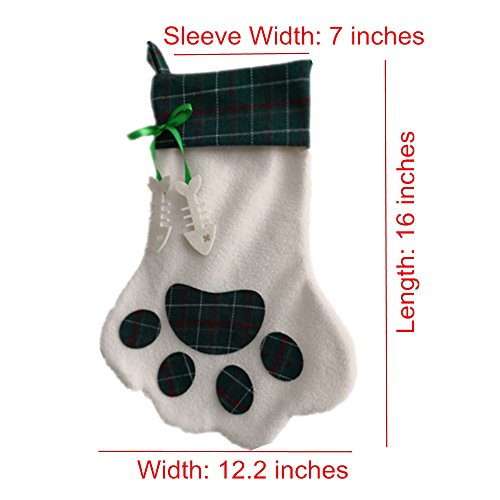 Dog Stocking Storage Bag, Pet Doggy Personalized Paw Stocking Carrying Bag Christmas Decorations with Embroidered Plaid and Bone Attached by Fmji
