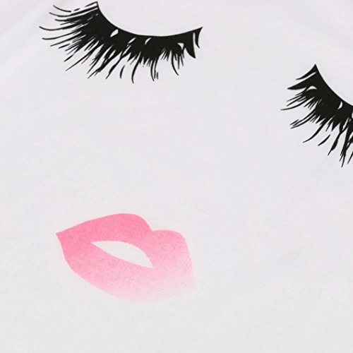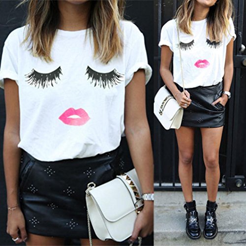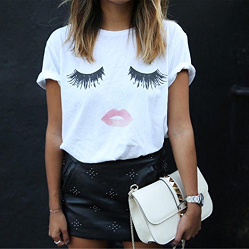 -. Binding : Apparel -. Brand : Leoy88 -. Color : White -. Department : womens -. Feature : Size:S Bust:84cm/33" Shoulder:36cm/14.2" Length:61cm/24" US:4 / Size:M Bust:88cm/34.6" Shoulder:37cm/14.6" Length:62cm/24.4" US:6 / Size:L Bust:94cm/37" Shoulder:38cm/15" Length:63cm/24.8" US:8 / Size:XL Bust:98cm/38.6" Shoulder:39cm/15.4" Length:64cm/25.2" US:10 / Leoy88 is the only designated sellers for Leoy88, Make sure you buy from Leoy88. If you purchase here but receive product from other sellers, please help us report to Amazon Customer service for copyright infringement of Leoy88 brand product. Thank you very much in advance! -. Model : Leoy88_00101 -. PackageQuantity : 1 -. ProductGroup : Apparel -. ProductTypeName : SHIRT -. Size : Medium -. Title : Leoy88 Women Lashes Lips P.R.Inted T Shirt Loose Tops Short Sleeve Blouse