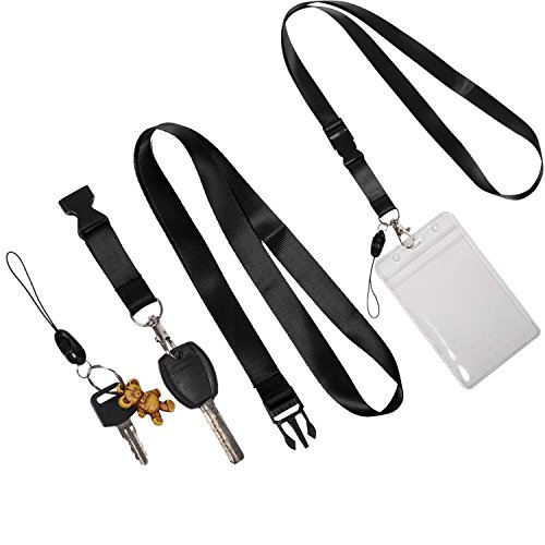 THIS BUNDLE: contains 5pcs black neck lanyards with detachable buckle, oval hook and quick release tether for carrying your keys, ID card, USB drives, cell phones, whistles, camera, video game electronics device. Ideal for trade shows, sporting events, backstage passes, press, membership cards etc.