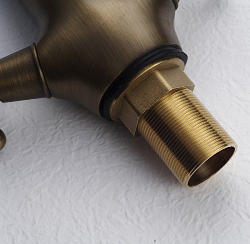-. Feature : Function:Bathroom Sink Faucet / Material:Solid Brass; Finish:Antique Brass / Feature:Deck Mount,Centerest Two handles / Overall Height:220mm ; Spout Height:180mm;Spout Length:130mm / The diameter of the hole in your sink:3.3cm-4.5cm.With two pipes for hot and cold water