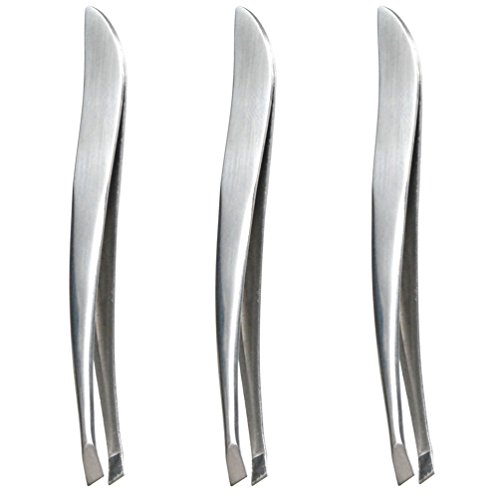 Luxxii (3 Pack) Pro Slant Tweezers - Stainless Steel Slant Tip Tweezers Hair Plucker for Hair and Eyebrows Personal Care