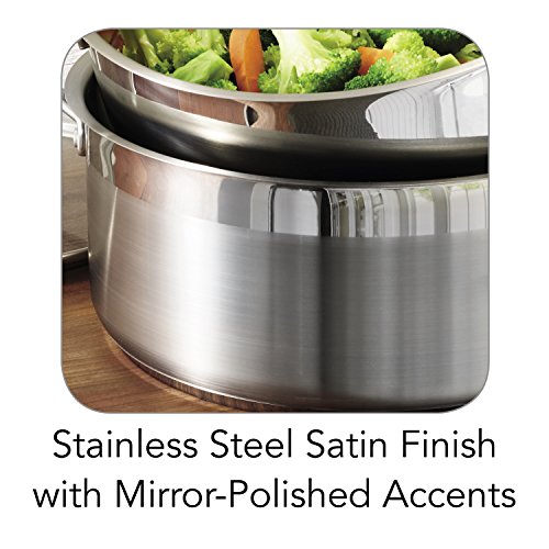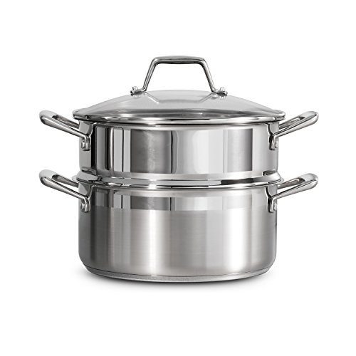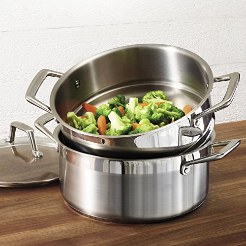 Tramontina's 5 Qt. Stainless Steel Steamer Set is ideal for cooking proteins and steaming vegetables all at once! It can also be used for seafood, hearty soups, stews, and so much more! Its durable 18/8 stainless steel construction features an attractive, fine satin finish with mirror polished accents, with a tri-ply base, that provides quick and even heat distribution for exceptional cooking performance on induction, gas, electric, and ceramic glass cooktops. The ergonomically designed, riveted, cast stainless-steel handles provide added support when handling the cookware, while the heat- and shatter-resistant tempered glass lid is convenient for monitoring your cooking progress. This set is oven-safe up to 350 F (176 C), and dishwasher-safe for convenient clean up.Feature