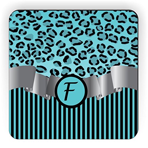 Rikki Knight Letter "F" Initial Sky Blue Leopard Print and Stripes Monogrammed Design Square Fridge Magnet