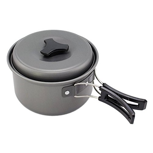 The pot and frying pan are made of anodised aluminum, which makes it solid and light.