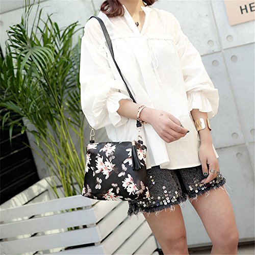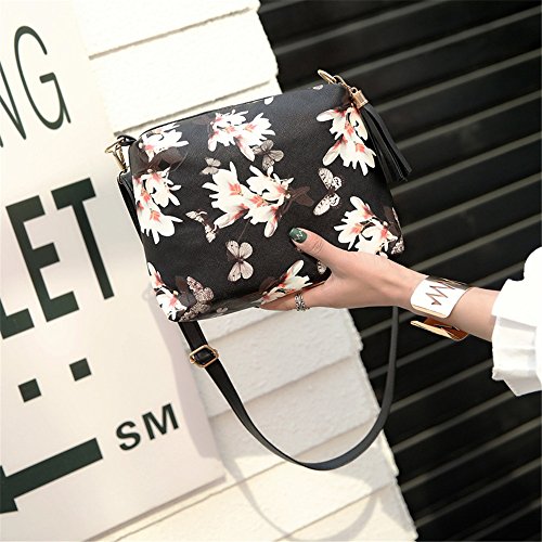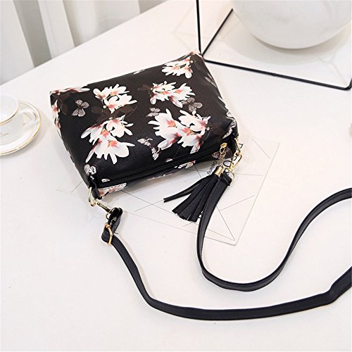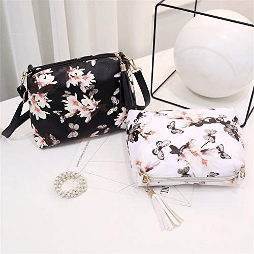 Unique korean style tassel zipper cross body shoulder bags, black & white for choice