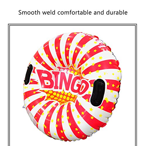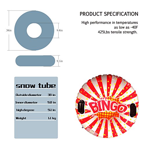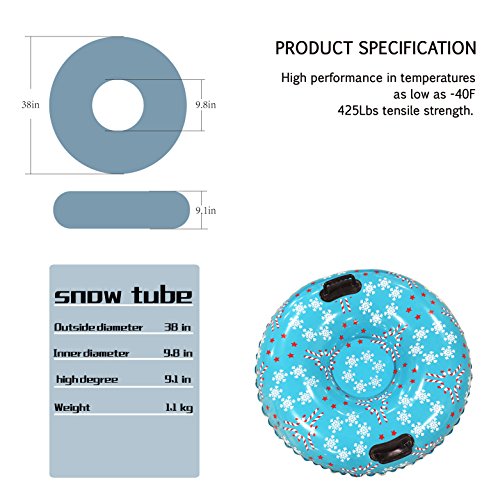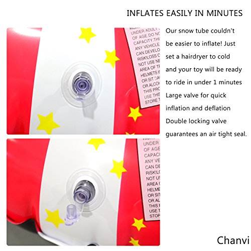 Have fun with Chanvi snow tube in coming winter. Choose your favorite color and get on your warm snow gear! Get ready for fast sledding on the slopes! Chanvi tubes can also be used during summer time for water sports fun. Feature: 2 heavy grab handles 16 gauge PVC materials Easy inflation and deflation Recommended for ages 6 Specification: Size: 38" round snow tube Material: 16 gauge cold resistant PVC Package Includes: 1 x snow tube repair kit