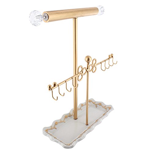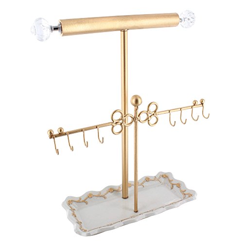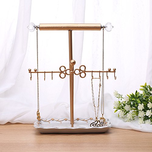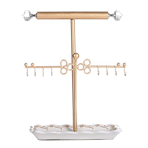 Ikee Design Metal Jewelry Organizer/ Jewelry Stand Tree Display/ Earring Necklace Bracelet Ring Holder Organizer Rack Tower with 8 Hooks & A Tray