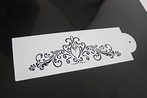 BAKEART FILIGREE SCROLL STENCIL FOR CAKE DECORATING, SUGAR ART, ICING OR CRAFTS, LARGE TEMPLATE PATTERN 10-¼ X 3-½