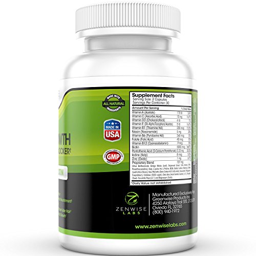 -. Feature : Baldness Protection - Formulated with 27 high-quality ingredients that are designed to not only revitalize and nourish your hair, but also to prevent vitamin deficiencies that may trigger hair loss in both men and women. / Reap the Benefits of Biotin - Our product contains 5000mcg of Biotin, which has been shown in major scientific studies to facilitate hair growth, shine and density. / Allergen-Friendly - Contains absolutely NO gluten, wheat, peanuts, tree nuts, soybeans, eggs or fish. / A Supplement You Can Trust - Our FDA-registered facility is NSF and GMP certified, and all of our products are manufactured in the USA / Manufacturer Guarantee - We offer a 100% no-hassle Manufacturer Guarantee for all our products. If you do not get the results that you were looking for, simply let us know and we will provide you with a full refund.