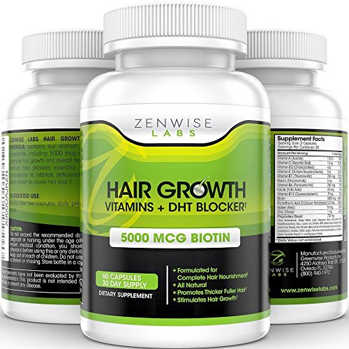 -. Title : Hair Growth Vitamins Supplement - 5000mcg of Biotin & DHT Blocker for Hair Loss and Baldness - Contains Vitamins That Stimulate Hair Growth & Shine for Men and Women - 60 Vegetarian Friendly Pills