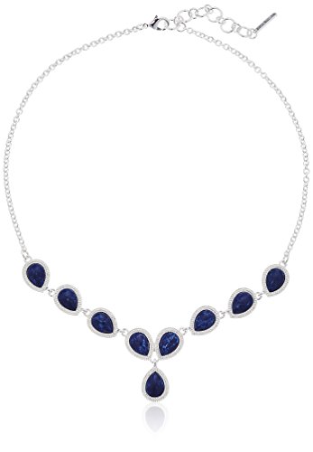 A stylish piece of jewelry by Nine West, this necklace features a silver tone chain design accented with denim blue stones inteardrop shapes flowing into one teardrop pendant. Necklace measures 16 in. in length + a 2 in. extender.