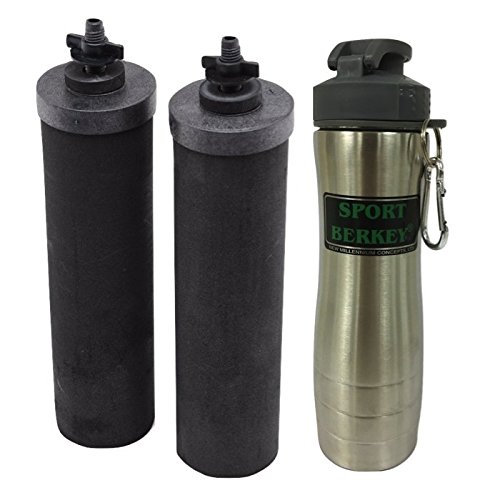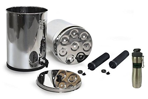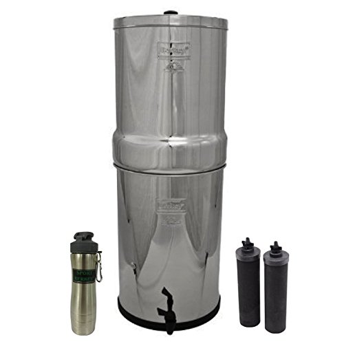 Crown Berkey Stainless Steel Water Filtration System w/ 2 Black Filters and Berkey Stainless Steel Bottle - Silver