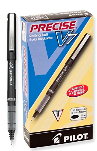 Pilot Precise V7 Stick Rolling Ball Pens Fine Point, Black Ink, 6 Pack