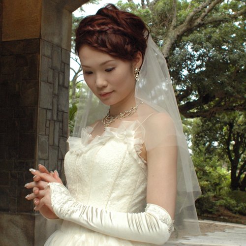 -. Feature : 自社製・オリジナルベール(ヴェール) ヴィーヴラマリエ青山店で扱っている、ウエディング(結婚式・ブライダル・2次会・パーティ)に利用いただける、花嫁様向けウェディングドレス小物です! / Size : 前の長さ 55cm / 後ろの長さ 75cm / 最大幅 150cm ショートベール フェイスアップ コーム付き / Color : White,Off-White, Ivory(ホワイト、オフホワイト、アイボリーの3色ご用意) ウエディングドレスにあわせてご選択ください。 / Fabric : Tulle, ベールチュールです。このチュールはイギリスのHEATHCOAT(ヒースコート)社のものです。生地幅が300cmあり制作しやすく、またベールに必要な適度な強度があるのに手触りはソフトです。(ナイロン100%) / コームは京都の老舗櫛メーカーのものを使用(スチール製)