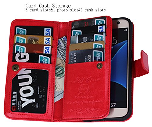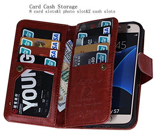 [Description] Detachable Magnetic: Inner case and outer flip card slot case are easy to combine and remove by magnet_ easy operates Also can be separated as a simple case to protect your phone. Ultra Protective: Drop-tested polycarbonate shell_shock-absorbent lining and full front bezel rims ensure complete impact protection against drops and bumps Multifunction:Made with Premium PU Leather.With 9 Card Slot_ Photo Slot and Card slots are designed for you to put your photo_ debit card_ credit card or ID card while on the go. and Wrist Strap Perfect Fit: Specially Designed for Samsung S7 _ Precise cutouts_ moldings and dust guards keep your touch ID_ camera_ speaker_ ports and other functions fully accessible and protected. Wallet Style Design:Consolidates everything of importance. No need to carry both a phone and a wallet