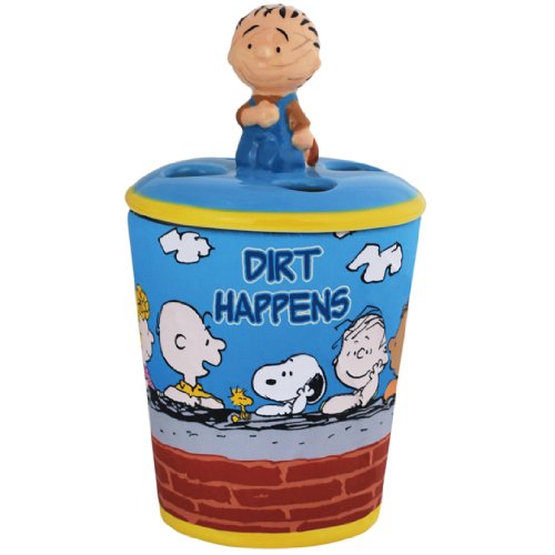 Westland Giftware Ceramic Toothbrush Holder, 6.5-Inch Tall, Peanuts Pig Pen Dirt Happens