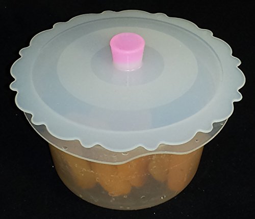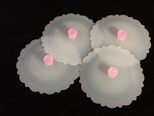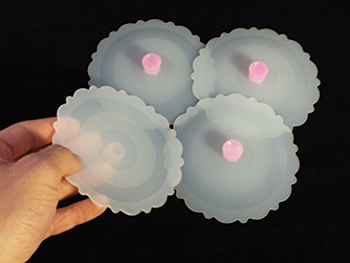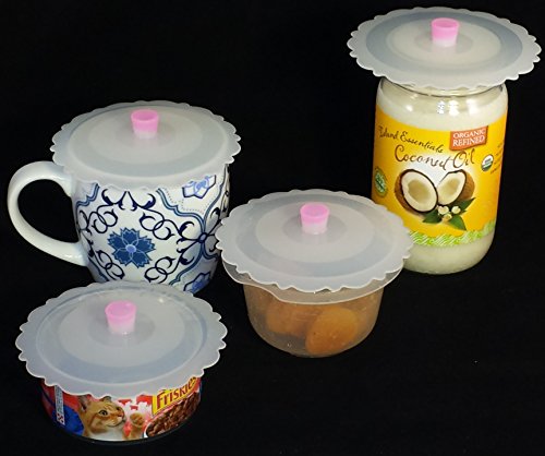 Set of four silicone suction cup lids that are compatible with many types of containers. Use as a coffee mug cover, tea cup lid, cat food jar cover, glass jar lid, canning jar cover, replacement tupperware cover or various other storage containers.Keeps your hot beverages warm and secure. Keeps flies out of your sweet drinks. Keeps food fresh. Just press lightly to create an air tight seal. Just lift the edge to easily break the seal.