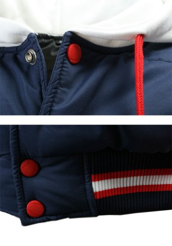 - Feature : Sizes Available: XS - XXL & 2 Color Choices / Stretchy two-tone ribbing trims cuffs and hem with Cotton Hood / Two side pockets and One inside pocket / Plain school baseball team letterman padded varsity jackets - no letterings / Snap-close front allows instant on-and-off