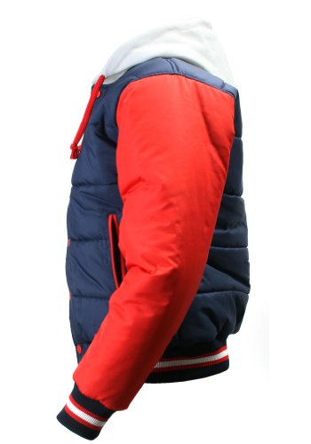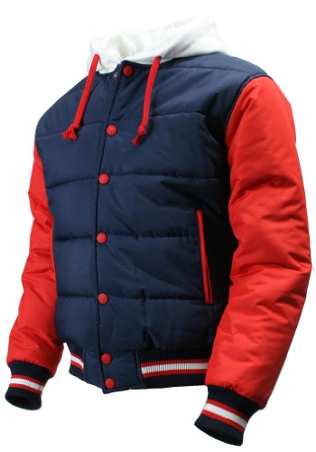 - Title : ililily Padded Varsity Jacket American Baseball Club College School Jacket Team Jacket with Stretchy two-tone ribbing trims and Snap-close (jackets-KH770-2-2XL-RD)