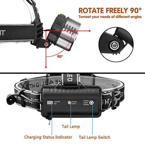 Tired of fumbling in the dark? The TopBest LED Headlamp brings the light! 6 Lighting Modes The headlamp has 6 different lighting modes, including the SOS flashing mode, which will effectively prevent you from getting run over by others. The metal part of the lamp holder is made of high strength aluminum alloy to maintain heat dissipation and strength, it may become hot after prolonged use with maximum brightness, please note when using. Elastic and Durable Headband Two loop buckles enable you to adjust both head-round band and the top band. The soft band provides you more comfortable feeling when wearing it directly on your head. Also, you can wear it on many kind of hats, like baseball cap, construction hardhat, motorcycle or cycling hamlets. The band can keep its good elasticity during a long-time use.