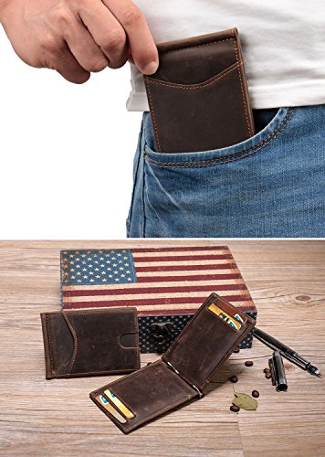 -. Feature : GENUINE LEATHER - Made with retro cowhide leather imported from Italy, soft and comfortable.,looks classy and very slim, Wallet Size: 4.3" in. x 3" in. x 0.4" in. / ULTRA SLIM & MINIMALIST - Designed Quick Access Slots to easily slide out the card from their sleeve.Holds up to 6 to 10 cards plus US bills with no bulk. / ENHANCES PERSONAL SECURITY: We leverage top RFID technology to block RFID signals used to electronically scan your wallet as someone passes by unnoticed. This keeps your vital information in driver license, debit cards and credit cards from being stolen. / PREMIUM FUNCTIONALITY - Our RFID wallet not only offers security, it's also very functional. It features 6 card slots for you to place your most frequently used cards. / PLEASE BE NOTED - This kind of leather is easy to get scratches on the surface, please understand.Thanks. If you're not completely satisfied with our RFID Blocking Wallet,please contact us directly and we'll refund your purchase or send you a replacement.