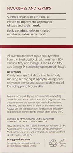 An efficacious reparative oil for face and body. Contains pure natural rosehip oil. rich in essential fatty acid (omega 3 and 6). Provides all-over hydration. strengthening and healing action. Remarkably corrects the appearance of scars. stretch marks. fine lines and wrinkles. Effectively treats dehydrated and aging skin. Unveils a softer. smoother. more refined and healthier looking complexion. To use: Gently massage a small amount into face or body day and night. Use alone or together with your regular moisturizing products.Feature
