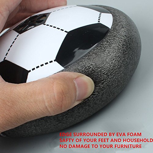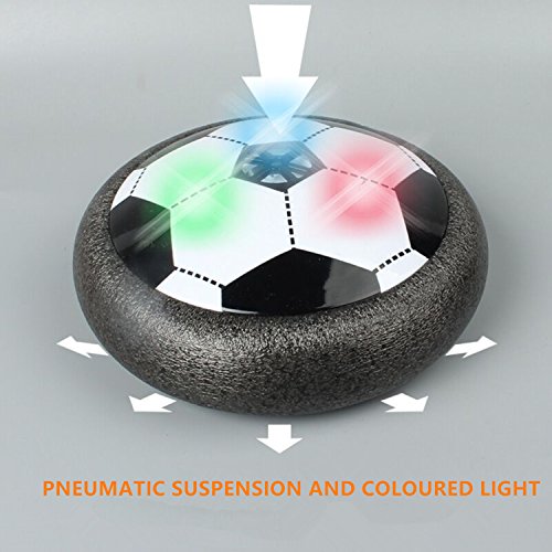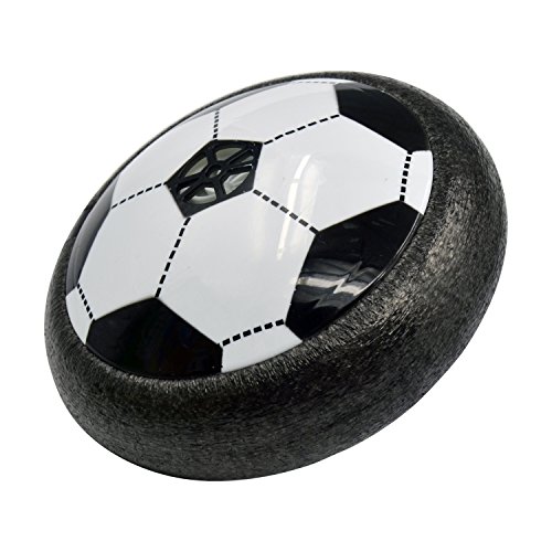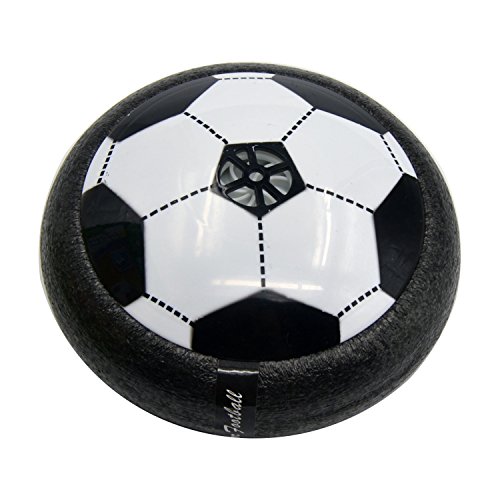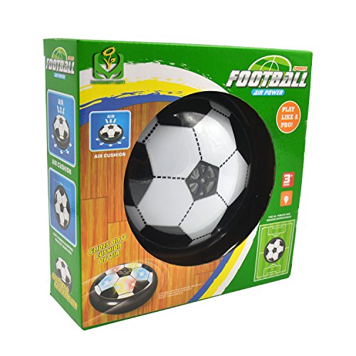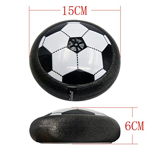 Studio : Aiergu Publisher : Aiergu Binding : Toy Product Description Feature: This Air power soccer is an amazing floating ball game that's great for both indoor or outdoor. Powerful fans create a cushion of air turning any surface into an instant playing field. With its powerful hover action, the Air Power Soccer Disk literally floats on a cushion of air! The disk's outer rim safely protects furniture and walls while allowing great rebounding. Just switch it on, place it onto any smooth surface, and a simple kick propels the disc for fast sports action indoors or out! Colored LED lights make your game wonderful even in night. Warning : Small parts. Not for children under 3 years. Specifications: Material: Non-toxic plastic Color: Black Size:15*6cm Battery: 3AA batteries (not included) Package Include: Only a air power soccer with box 0