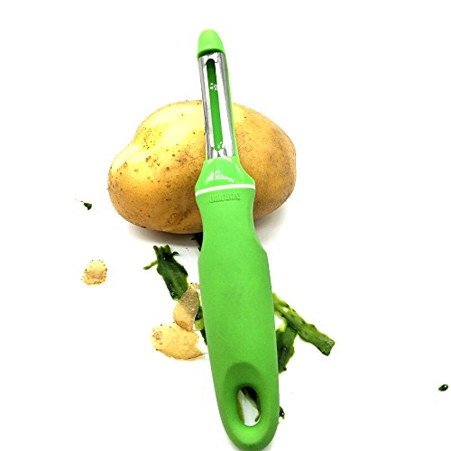 Its flexible, rotating stainless-steel blades make peeling simple by contouring to almost any surface shape. The built-in potato eye remover is durable and can easily carve out blemishes without digging.