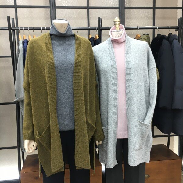 고급스러운 분위기의 울가디건 ! 양모함유량이 높아 따뜻함은 물론이고 가볍게 걸치기 좋은 숄가디건 디자인으로 깔끔한 매력이 있는 제품이에요. 산뜻한 올리브 색상을 띄는 골드색과! 기본의 그레이색상~ 버튼없는 숄라인으로 베이직한 멋스러움이 매력적이에요 .루즈하게 떨어지는 핏과 힙을 덮는 기장으로 체형 관계없이 부담없이 입기에 딱 좋아요^^ 탄탄한 짜임의 양모80% , 나일론 20% 혼방 소재로 더욱 포근한 착용감을 느껴볼 수 있답니다. 큰 포켓이 있어 실용성 좋고 약간의 오버핏으로 매년 유행없이 입어질 가디건 찾으셨다면 추천해요. 총장길이는 55사이즈 기준으로 88cm 입니다.